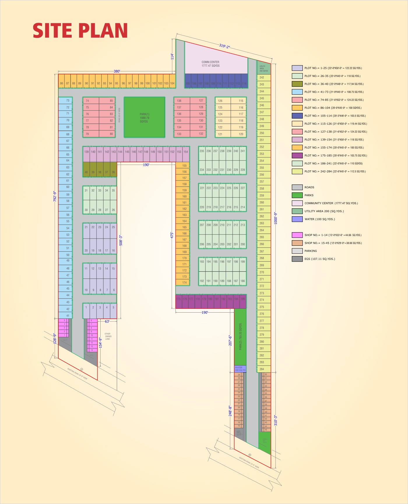 | Numbers Of Plots | Plot Size (Sq.yards) | Plot Dimension | Rate / Sq.yard | Basic SalePrice | (12.50% Direct Discount) | Net Price |